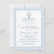 Boys blue damask baptism invitation with blue pearl cross and elegant script on a pretty baby blue damask background. This elegant blue damask baptism invitation is easily customised for your event by simply adding your details in the font style and colour, and wording of your choice.