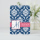 Blue Damask Initial RSVP Cards for Square Invites