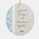 Blue Damask Lace Print Fabric Pattern Personalise your custom Ornament with your name and the year! Perfect Christmas gift for any family member or friend!