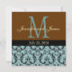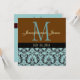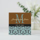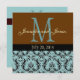 Blue Damask Monogram Brown Wedding Invitation
