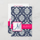 Blue Damask Pink RSVP Cards for Square Invites