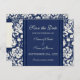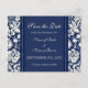 Wedding save the date announcement postcards in elegant cream and dark navy blue floral damask pattern, stylish and fully customisable with your wedding details. Also available in many other products for the wedding party.