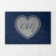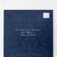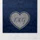 Elegant blue on blue damask all in one wedding invitation, reception card and RSVP post card, with decorative faux silver glitter heart with monograms. Personalise every text fields with your information.