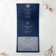 Blue Damask Silver Heart All in One Wedding Tri-Fold Invitation