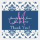 Square, Pink Monogram, Blue and White Damask Wedding Favour Thank You Labels. Damask Wedding Favour Thank You Stickers. Layout by Elke Clarke. Graphics licensed. Need help coordinating "day of" wedding items for your wedding? Please contact luxuryweddinginvitations@gmail.com