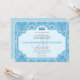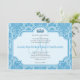 Blue Damask Wedding Invitations Monogram M. These blue damask wedding invitations include a princess crown within an arched frame with template text for you to customise. You may change the font of the text by clicking "customise it" and using the custom tools to the right of the invitation image. If you need help feel free to click on "Contact" and email a request.