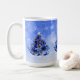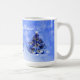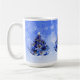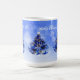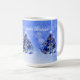 Blue decorated Chistmas tree with snow and snowflakes customisable,christmas,tree,with,text,mug,decorated,blue,snow,white,snowing,ornaments