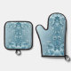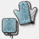 Beautiful Blue Decorative Floral Oven Mitt & Pot Holder Set