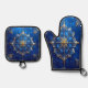 Beautiful Blue Decorative Oven Mitt & Pot Holder Set