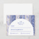 A timeless blue and white design inspired by classic Delft porcelain and French toile patterns. The patchwork tile border combines delicate florals, stripes, and ornamental motifs that evoke vintage European ceramics. A soft arched panel in the centre keeps the layout refined and elegant while allowing the details of the porcelain-inspired pattern to frame the celebration beautifully. Perfect for couples planning a sophisticated blue and white wedding with traditional European charm.