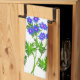 Original fine art design of elegant blue Delphinium or Larkspur garden flowers by artist Carolyn McFann of Two Purring Cats Studio printed on a quality, machine-washable kitchen towel for floral art fans.