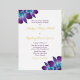 Gold, purple and turquoise blue Dendrobium orchid wedding invitation. Simple wedding invitation design that features a beautiful orchid variety called a blue dendrobium. It is teal / turquoise in colour paired with violet and royal purple. The names of the bride and groom and the reception wording is in real gold foil. A great flower choice for peacock wedding colour theme.