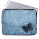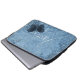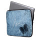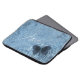 Sweet denim blue jeans with indigo butterfly perched on floral rose background with romantic scrolls and flourishes. The word Love is handwritten in white across the design, by iPhone uPhone.