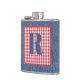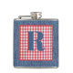 Blue Denim, Red & White Check, Large Initial 6oz Hip Flask