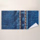 Blue denim texture with stitch line closeup, Jeans Bath Towel