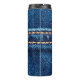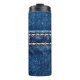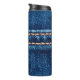 Blue denim texture with stitch line closeup, Jeans Thermal Tumbler