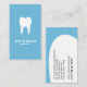 A modern and contemporary dental business card featuring a silhouette of a white tooth against a blue background. Customisable text areas for name, speciality or clinic name and other contact information on the back. For custom requests or help with customising please use the store contact link above. Elegant dental business card for dentists, orthodontists, dental hygienists and assistants and anyone working with teeth.