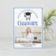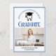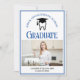This cute blue custom dental school graduate announcement card features a tooth wearing a graduation cap for a class of 2025 dentistry graduate above your student photo. Customise with your graduating year under photograph for a great personalised dental hygienist, orthodontist, or dentist graduation card.