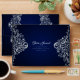 This envelope design exudes pure elegance and luxury, combining a deep black background with a lavish silver damask pattern that sparkles with a diamond-like effect. The intricate swirls, florals, and ornamental motifs frame the text area beautifully, creating a glamourous and sophisticated impression. The shimmering silver detailing against the dark backdrop makes it feel both formal and celebratory, perfect for upscale occasions.