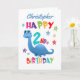 A special 2nd birthday card! This bright fun second birthday card features a blue dinosaur, some pretty stars and colourful text. A cute design for someone who will be two years old.