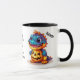 Here's a cute Halloween mug for kids that is more fun than scary, and can easily be customised for a grandchild, son, or daughter. A bright blue dinosaur with an orange jack o' lantern roars on two sides of the mug, with black text at the centre that you may customise for your own greeting. Especially appropriate for young kids.