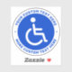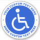 Round stickers featuring the classic disabled symbol, a man in a wheelchair on a circular, blue background with your custom text above and below..