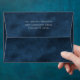 Beautiful deep blue distressed faux texture with return address on back flap done in ecru colour to match coordinating wedding invitation. Faux gold inside to add a chic luxury look. Stunning.