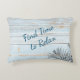 Lovely accent pillow in blue tones on a distressed wood background. The message FIND TIME TO RELAX is underscored by the shadow of a plant. Casually elegant addition to any room. Great gift idea!