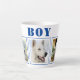 Cute Blue Dog 3 Photo Collage with Name Latte Mug. Name of the pet in blue colour and 3 photos in blueframes. Add 3 photos and a name.