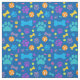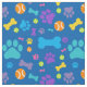 A colourful dog paw print pattern on a blue background. This perfect puppy fabric is just the thing for your pet sewing project.