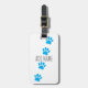 Cartoon dog paw prints in blue. Custom luggage tags. Edit name to customise