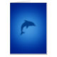Dolphin silhouette on a glowing blue sea background