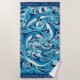 Cool blue summer with our Blue Dolphins & Waves Customisable Beach Towel featuring a captivating abstract illustration of playful dolphins swimming in the surf! Text can be updated with name / monogram or custom motto to create a personal accessory or gift!