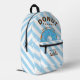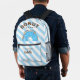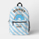 This blue and white striped, personalized donut backpack features a large donut graphic, a front pocket with the text "it belongs to Isabella", and the phrase "DONUT TOUCH! TOO SWEET TO TOUCH" on the main body. This blue Donut backpack is a funny and cute gift for girl.