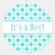 Baby shower it's a boy favour tag sticker in elegant bright turquoise aqua blue and white casual and fun polka dots pattern. Customisable with your own text, contact us for a colour change. The perfect way to decorate your baby shower favours and thank your guests for being a part of your special day.