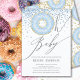 Modern Oh Baby shower design featuring a blue doughnut with blue glitter and a modern script font. Flip our invite over to view a coordinating back for an extra special touch.