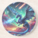 A mystical blue dragon flies through a vibrant cosmic sky, surrounded by stardust, snowflakes, and shooting stars.