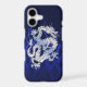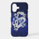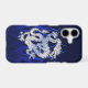 A Dragon applique in chrome like silver style on a blue flaming carbon fiber background print to wear or to share on all festive occasions. Message