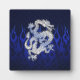 Blue Dragon in Chrome Carbon racing flames Plaque