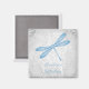 Add a touch of colour to your kitchen with a Blue Dragonfly Personalised Magnet. Magnet design features a colourful dragonfly, a soft white leafy vine against a light grey grunge damask background with an area to personalise with your name. Additional gift items available with this design as well as a variety of colours.