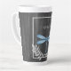 Enjoy your latte or morning coffee with a Blue Dragonfly Rustic Personalised Latte Mug. Mug design features a vibrant dragonfly adorned with delicate foliage against a dark grey rustic wooden background. Additional gift items available with this design as well as a variety of colours.