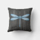 Add an elegant touch to your living or bedrooms with a Blue Dragonfly Rustic Personalised Throw Pillow. Pillow design features a vibrant dragonfly adorned with delicate foliage against a dark grey rustic wooden background. Additional gift items available with this design as well.