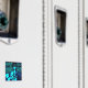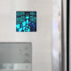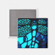 an image made from a stained glass lamp has been altered to a bright blue monochromatic image perfect for fun artistic magnets
