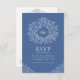 Blue drawn leaf monogram RSVP wedding QR Code Enclosure Card