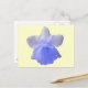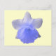 This pretty floral postcard features a beautiful macro photo of a Daffodil showing this plant in beautiful detail following a rain shower. The flower has been artificially coloured resulting in stunning white outer petals with blue veins and a pretty light blue trumpet. The photo is so detailed that you can see the little water droplets sitting on the flower. The background is pale yellow.