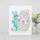 A fluffy blue Easter bunny gets ready to paint a giant easter egg.