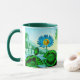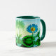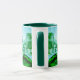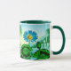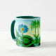 Coffee mug in a stylised illustration of a blue Egyptian lotus plant / water lily against an exotic Far Eastern landscape