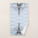 Add a touch of Paris to your bath with this unique Blue Eiffel Towel Flourish Towel Set. Towel set design features a vibrant wavy background with the Eiffel Tower adorned with elegant flourishes and space to personalise with your name. Additional colours available with this design as well. Please contact me directly if you need assistance with personalisation.