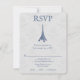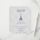 Blue Eiffel Tower Damask Wedding RSVP Card