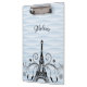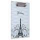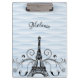 This Blue Eiffel Tower Flourish Clipboard features a design of a the Eiffel Tower adorned with elegant flourishes against a blue wavy background. Additional colours available with this design as well. This item may be personalised with a name, monogram, or favourite saying of your choosing. Please contact me if you need assistance with personalisation.
